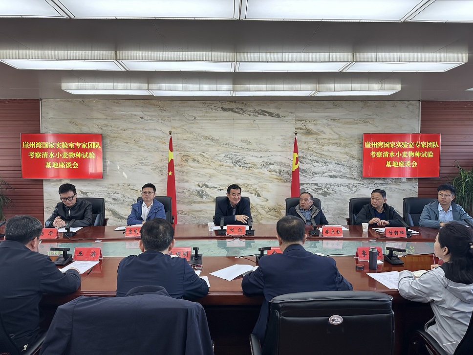 座谈会上,李立会介绍了崖州湾国家实验室小麦种质创新与新品种培育团队的基本情况,以及全国小麦物种试验基地的布局规划与工作任务。他强调,团队将紧紧围绕国家小麦种业发展的重大需求,着力开展原始创新,突破关键核心技术瓶颈,加快构建覆盖种质资源、基因发掘到品种培育的全产业链创新体系;刘信介绍了崖州湾国家实验室的建设理念与推进机制,重点阐述了实验室“核心+基地+网络”的工作体系,并说明物种试验基地的选址与建设需符合“区域代表性、生态代表性和属地积极性”三原则。他指出,清水县作为全国小麦条锈病的常发易变区、新小种策源地与菌源越夏区,在全国小麦条锈病防控体系中具有“前沿哨所”与“关键屏障”的重要地位。双方表示,在承担国家重大任务的同时,将积极对接地方发展需求,协同解决小麦产业实际问题,在服务国家战略的基础上,进一步深化与甘肃省科技厅、甘肃省农科院及清水县的合作,支持地方开展种质资源创新,共同推动种业高质量发展。